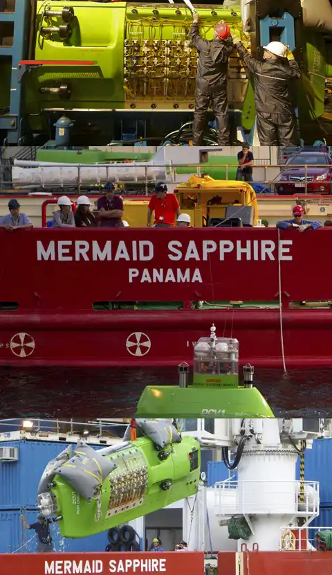 Материнское судно нового батискафа зовётся «Сапфиром русалки» (фотографии Deepsea Challenge, National Geographic).