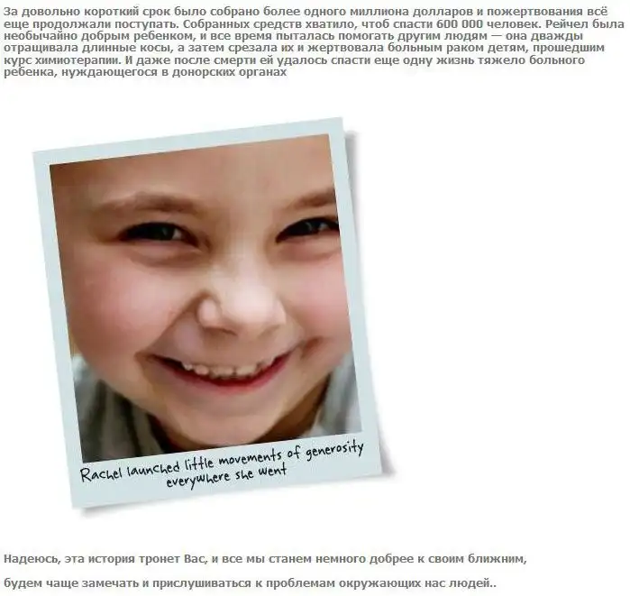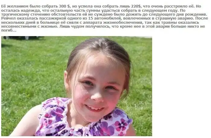 Жаль, что маленькая Рейчел Беквит об этом уже не узнает :(