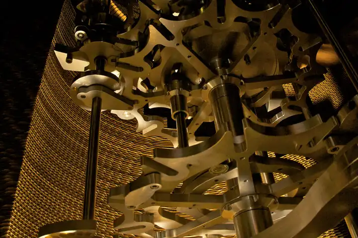 Это устройство авторы сравнивают со старинной механической вычислительной системой — разностной машиной Чарльза Беббиджа. Благодаря этим шестерням сколько бы посещений ни пережили 10-тысячелетние часы, каждый визитёр услышит свою уникальную мелодию.