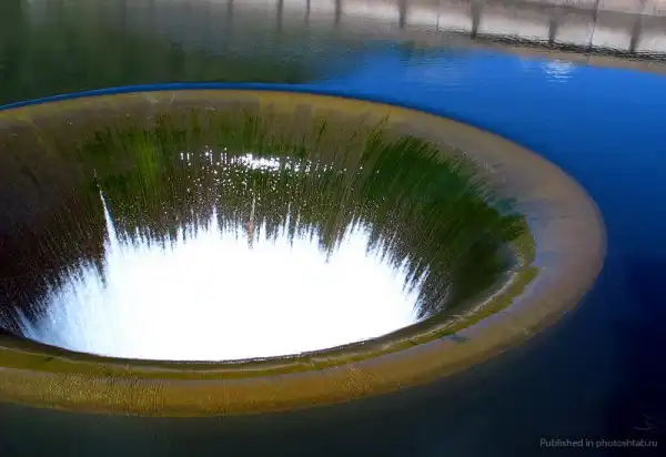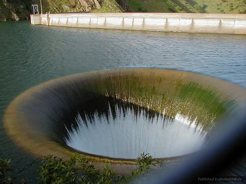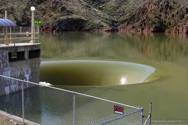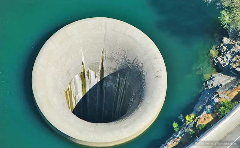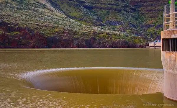 Когда уровень воды поднимается достаточно высоко, со стороны может показаться, что вода, образуя гигантскую воронку, сливается в самые недра земли. Из-за оригинальности проекта плотина стала очень популярной среди туристов, и незаурядный водосброс окрестили “дырой славы”.