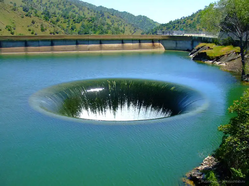Когда-то давно в Америке был город Монтичелло (Monticello), где было много пшеничных полей и фермерских угодий. Но потом и город, и поля, и фермы затопили, чтобы на их месте образовать искусственное озеро Берриесса и легендарную плотину Монтичелло. Легендарна плотина потому, что водосброс у нее организован в виде огромной сливной дыры.