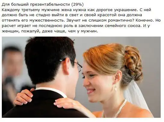 Здесь в цифрах дан ответ на вопрос: "Почему мужчины женятся?".