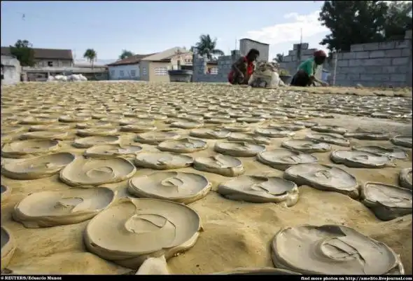 Поскольку уровень жизни на Гаити оставляет желать лучшего, там до сих пор в ходу лепёшки из грязи. Жёлтая грязь смешивается с солью и растительным маслом и выпекается. Жители бедных районов Гаити питаются такими лепёшками почти каждый день. У этого явления есть даже название - геофагия.