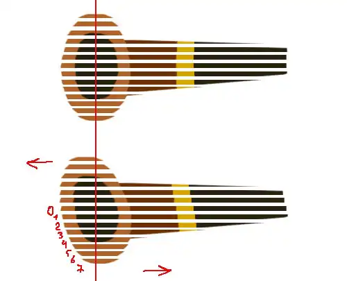 2. Теперь берём ластик и из множества копий слоёв трубки, ориентируясь на полученные линии, делаем вот такой набор. Здесь я показал только "переднюю часть трубки. "Задняя" часть делается так же.