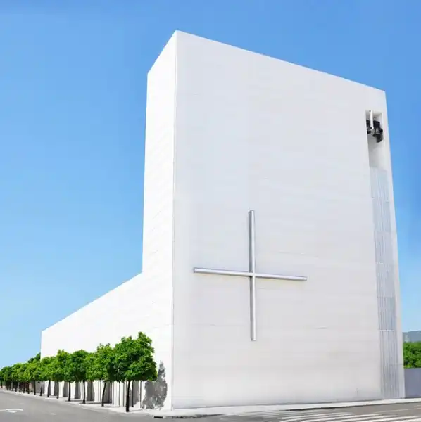 Расположена в испанском городе Кордове. Совсем еще молодая церковь была спроектирована архитектурным бюро Vicens + Ramos в прошлом году по всем правилам строгих минималистических канонов. Единственным отступлением от строго белого цвета является золотая стена на месте алтаря.
