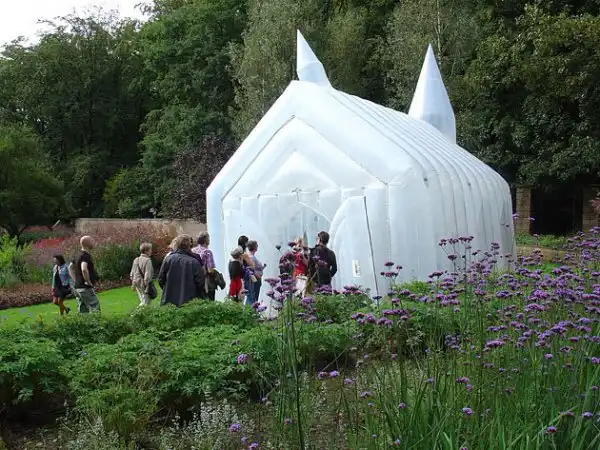 Голландский философ Фрэнк Лос (Frank Los) придумал надувную церковь Transparent Church, которую можно возвести в любом уголке земного шара и при любых условиях: на фестивалях, частных вечеринках и прочих массовых мероприятиях. Надувная церковь легко помещается в багажнике автомобиля и в разобранном состоянии вмещает в себя около 30 прихожан.
