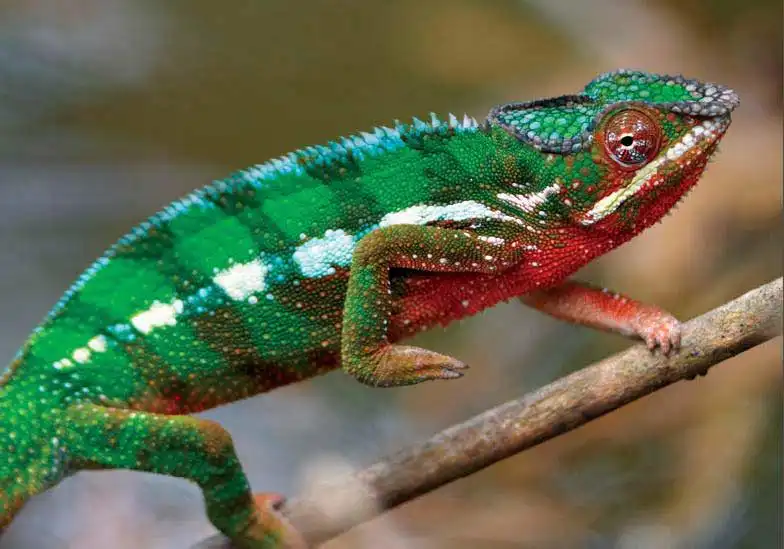Слово «хамелеон» в нескольких языках является именем нарицательным и обозначает того, что лжет. Даже язык хамелеона является «обманчивым» органом. Обычно он в два раза превышает длину тела животного. Хамелеон может вытаскивать его с такой скоростью, что человеческий глаз просто не заметит этого. На кончике языка имеется клейкий слой для того, чтобы ловить добычу. Также хорошо известна способность хамелеона подстраиваться под окружающую среду, меняя цвет. Они так ловко меняют цвет, что становятся незаметными, сливаясь с природным фоном. Также иногда цвет может говорить о настроении хамелеона: когда он злится, то становится красным.