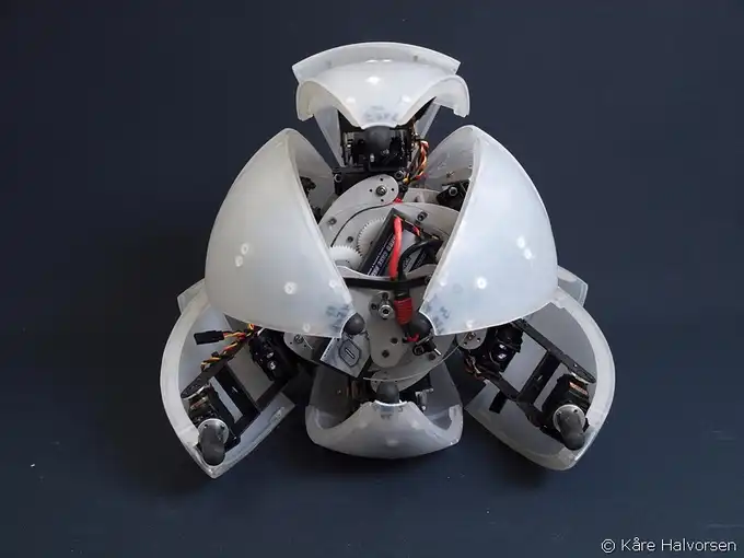 Главное достоинство MorpHex, его способность катиться посредством попеременного раскрытия панелей.