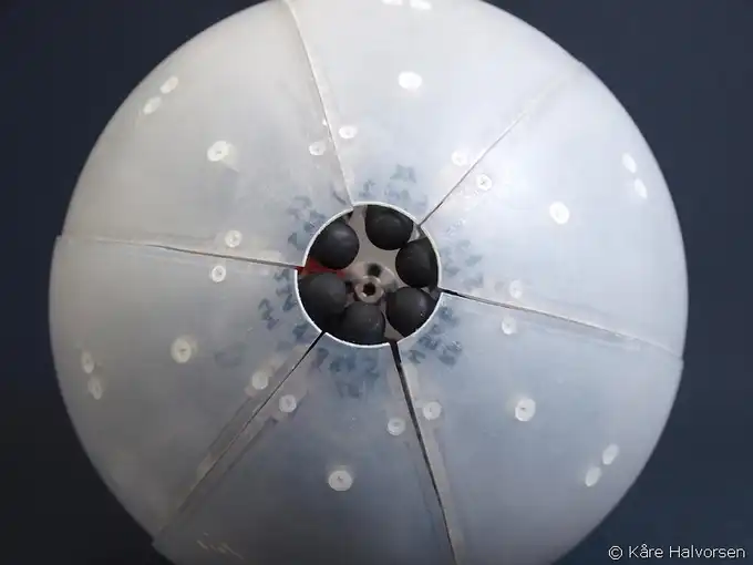 Модель состоит из 12 панелей поликарбоната разрезанного глобуса. Сам механизм управляется с помощью дистанционного управления.