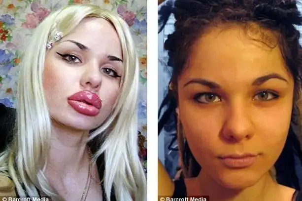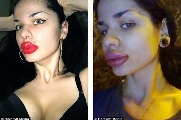 На фотографии: Кристина Рэй – сейчас и в 15 лет до операцийПотратив около 7 тысяч долларов на силиконовые инъекции, девушка, которая сейчас работает мастером по маникюру, поняла, что у нее зависимость от пластической хирургии, но остановиться она уже не может и продолжает увеличивать и так гигантские «надутые губки».Соглашаясь каждый раз на еще большие силиконовые имплантаты для губ, Кристина осознает, насколько «крайне болезненной» будет операция, но все же соглашается на процедуры, стоимостью около 70 долларов.