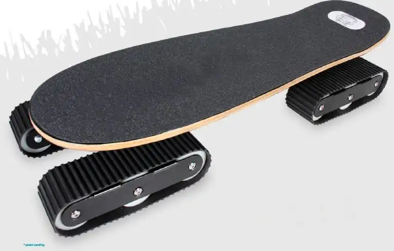 Компания M-Y Products выпустила на американский рынок скейт-вездеход Rockboard Descender. У доски 36 колёс, покрытых резиновыми гусеницами.