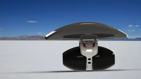 На высохшем солёном озере, на котором сорвиголовы бьют рекорды скорости, новая доска выглядит как летающий скейт с турбореактивными двигателями (иллюстрация ARIS Sport).