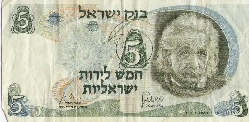 Израильская пятифунтовая купюра с портретом Эйнштейна (1968).