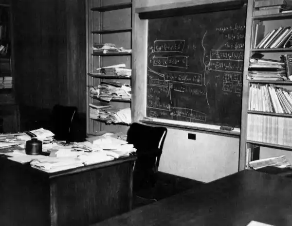 Доска Эйнштейна, на которой он делал свои последние записи 16 апреля 1955 года.