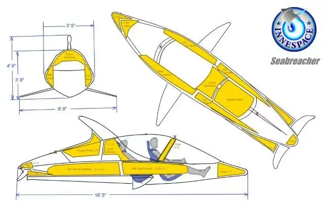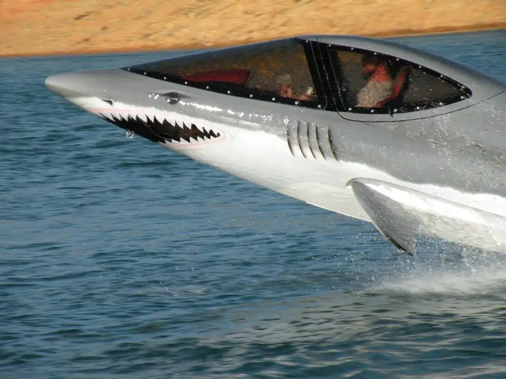 На этих снимках показан предшественник «акулы» – «дельфин» Seabreacher J. Кстати, распространённый вопрос: что будет, если я на таком катере нырну слишком глубоко? Всё просто – через секунд двадцать ДВС заглохнет, а поскольку лодка легче воды – она всплывёт.