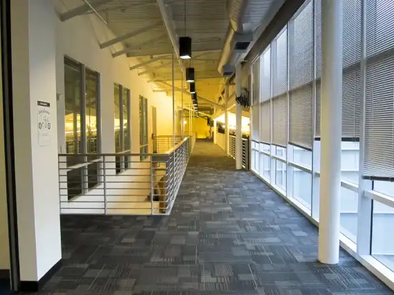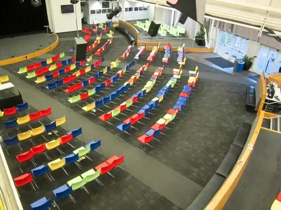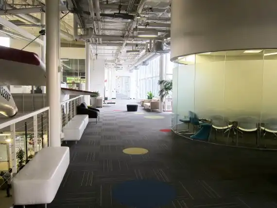 Один из центральных конференц-холов компании, где каждую пятницу проходят мероприятия по обмену опытом. По словам работника все выступления “подогревают” пивом. Часто на такие события приходят звезды. Вход исключительно для сотрудников.