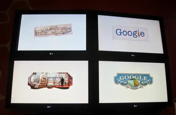 В одном из залов в режиме онлайн меняются картинки, которые мы можем видеть при загрузке строки поиска Google.
