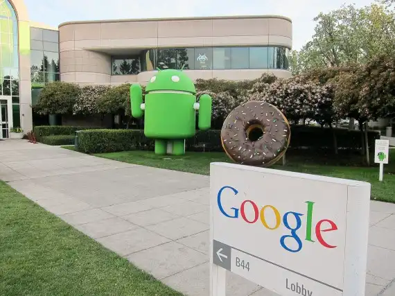 Центральный офис разработчиков андроид-плаформы. Перед зданием - статуи основных версий ОС.