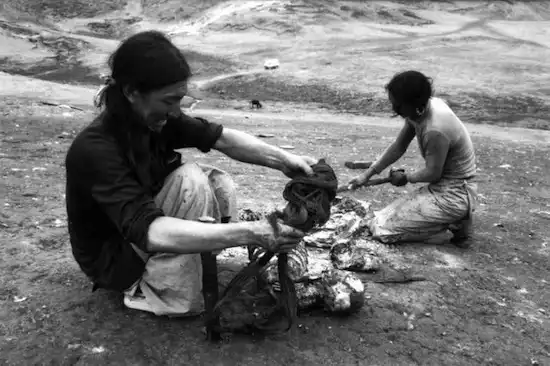 Жители Тибета не могут хоронить тело в земле, так как земли в горах и скалах большой дефицит. Вместо этого родные и близкие относят покойного на вершину какой-нибудь ближайшей горы и оставляют на съедение диким зверям. Считается, что такой способ обеспечивает прямую и быструю доставку души прямо на небо. Чтобы ещё более ускорить процесс, тело иногда разрубают на мелкие куски и смешивают с молоком и мукой, чтобы точно ни кусочка не осталось.