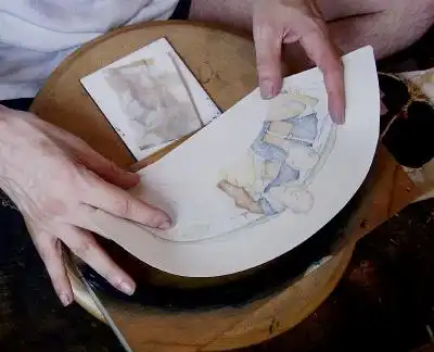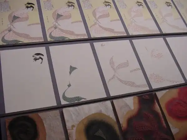 На рисунках показаны стадии работы над гравюрой Укиё-э.