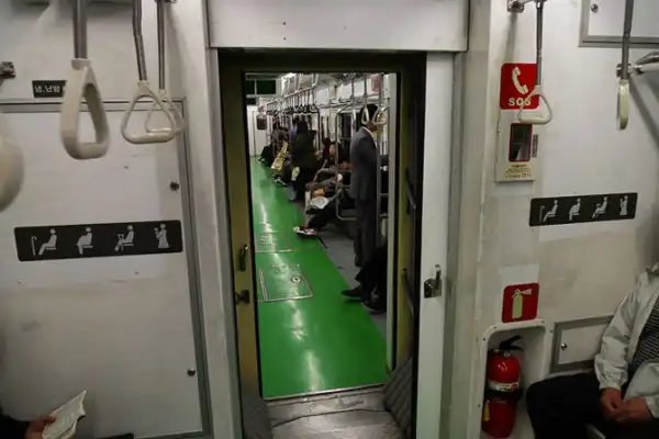 Двери для входа в вагон открываются синхронно с воротами на станции, как в Питере. Странно, что в Москве так не сделали, столько жизней можно было спасти. Каждая дверь в вагоне обозначена своим номером. Видите таблички на платформе? То есть можно сказать: встречаемся на станции «Чунмуро» у двери номер 4 пятого вагона. Потеряться невозможно!