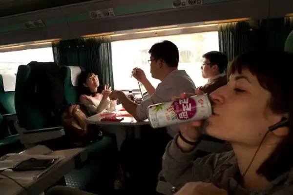 Также нам удалось прокатиться на скоростном поезде через всю страну, от Сеула до Пусана. Несмотря на то, что поезд движется быстро – 300 км/час, скорости не ощущается, нет ни стука, ни тряски. Ехать действительно очень комфортно! Мы даже не заметили как за пару часов пролетели через всю Корею. Интересен также тот факт, что билеты контролёр у нас так и не проверил. Я просто забыл в какой карман их сунул, и стал искать. Кондуктор сказал – ок, я вам верю. И всё! Про отношения, основанные на доверии, я также расскажу дальше.