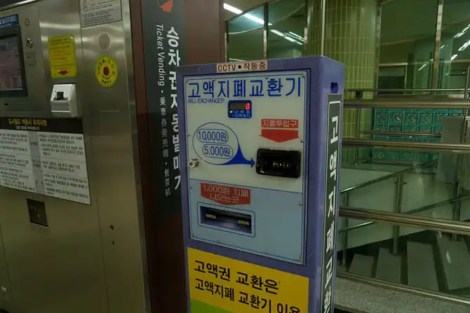 Кстати, возле терминалов самообслуживания нет очередей, потому что, в основном, все местные пользуются T-money. Возле каждого терминала стоит также автомат размена денег. Очень удобно!