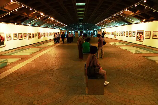 А это Метро-арт-центр. Можно поглазеть на современное искусство, не выходя из подземки. Радует, что у нас тоже предпринимаются похожие шаги.
