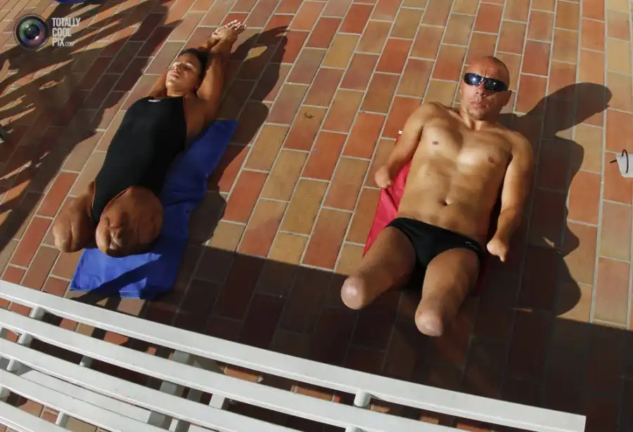 Не только всемирно известные спортсмены с отменным здоровьем готовятся максимально проявить собственные способности во время лондонской Олимпиады 2012 года. Паралимпийцы собираются приложить в столько же усилий, если не больше, пытаясь стать лучшими в своих видах спорта. Серия фотографий, которую мы предлагаем вашему вниманию сегодня, запечатлела испанских пловцов Хави Торреса и Лорена Хомар во время тренировок.