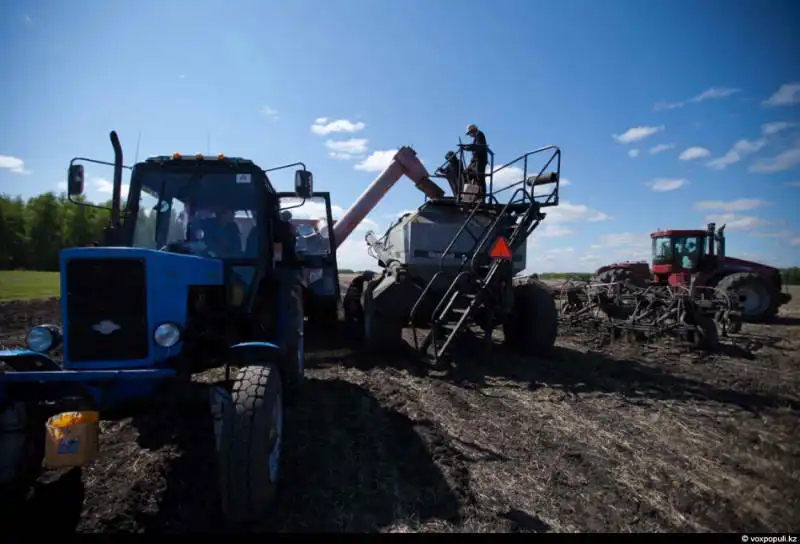 19. Поля обрабатывается техникой, которую Биржан привез из-за границы. В общей стоимости она обошлась ему в 11 миллионов долларов. Среди этих машин есть такие известные тракторы как «Челенджер», «Амазон», восемь «Кейсов» и четыре посевных комплекса.
