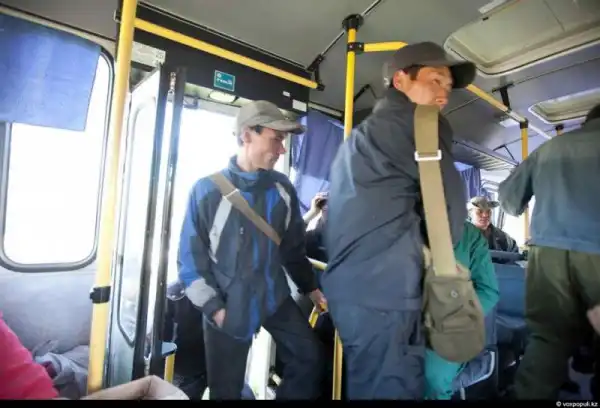 8. А эти те самые люди, которые сеют хлеб. Дорога до полевого стана занимает 20 минут. Все уже много лет работают друг с другом, поэтому в автобусе не умолкают разговоры и смех