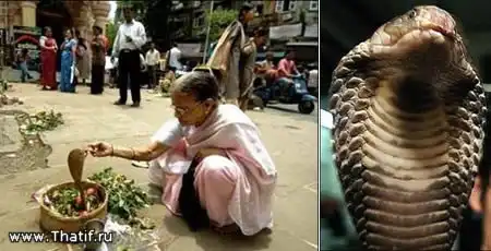 Женщина, которая утверждала, что влюбилась в змею, вышла замуж за рептилию согласно индусским ритуалам в деревне Atala района Orissa's Khurda. Необычный брак состоялся в 2006 с более чем 2 000 гостями. Одетая в шелке сари, 30 летняя невестка сидела в течение приблизительно одного часа а вокруг нее пели молитвы монахи. Змеи на церемонии не было на месте и вместо нее присутствовала медная точная копия змеи . Бимбэла сказала: «Хотя змеи не могут говорить, мы общаемся специфическим способом. Всякий раз, когда я помещал молоко около муравейника, где Кобра живет, змея всегда выползает чтобы выпить молоко.» Когда Бимбэла высказала свою идею выйти замуж за змею, сельские жители были рады и решили что брак принесет удачу в их деревню.