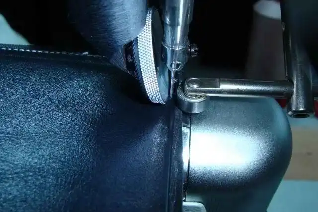 Процесс бруссовки кожи (Подрез края кожи по толщине)