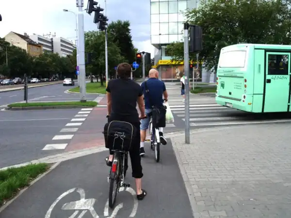 На улицах другой порядок. Полоса для велосипедов проходит либо по тротуару, отвоевывая жизненное пространство у пешеходов.