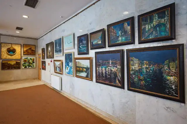 08:55. Рядом с конференц-залом постоянно проводятся авторские выставки живописи и других видов изобразительного искусства.