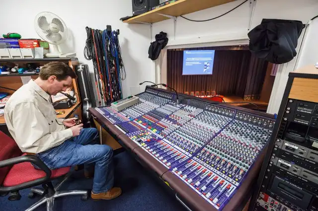 08:57. Рабочее место звукорежиссера конференц-зала.