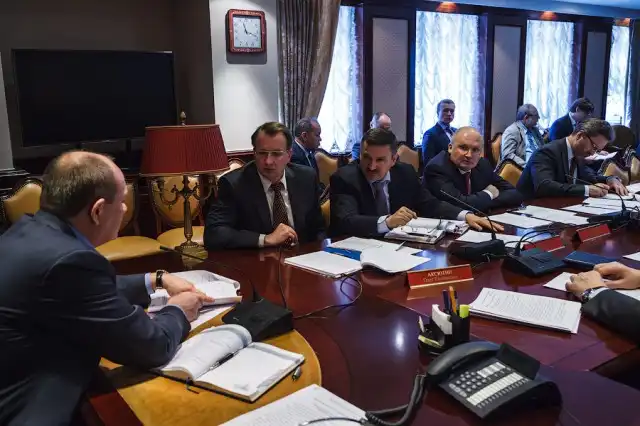 11:14. В кабинете заместителя Председателя Правления Виталия Маркелова, который курирует производственный блок. С десяти утра идет селекторное совещание с участием руководителей структурных подразделений Администрации «Газпрома» и генеральных директоров дочерних компаний. Решаются различные текущие вопросы. Мой сопровождающий, который тоже участвует в совещании, говорит, чтобы я не стеснялся — ходи и снимай, как хочешь. Впервые за много лет немного неуютно почувствовал себя без костюма :)