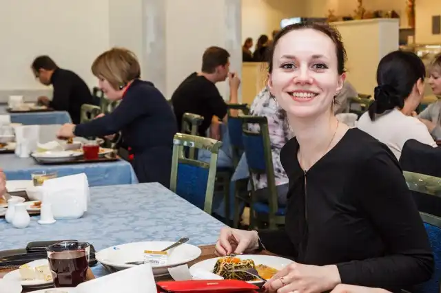 11:31. Помимо столовой есть кулинария с тортиками, кафе и ресторан. Все, что душа пожелает.