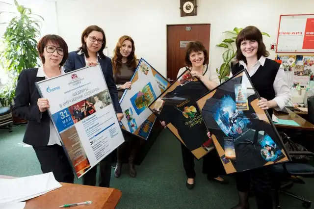 15:53. Сотрудники Департамента по информационной политике и постеры реализованных ими проектов. Многое осталось за кадром. В процессе съемок разбили стекло на одной рамке, но это нисколько не испортило девушкам настроения.