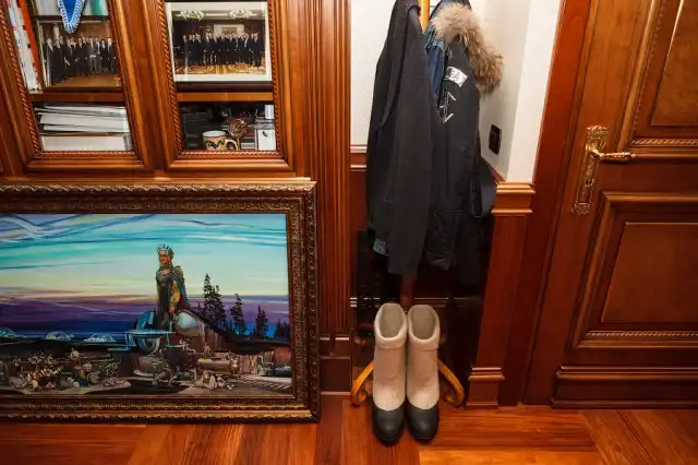 21:52. А в кабинете Сергея Куприянова просто яблоку негде упасть. Все заставлено книгами, картинами, различными предметами. Вот, даже валенки есть.