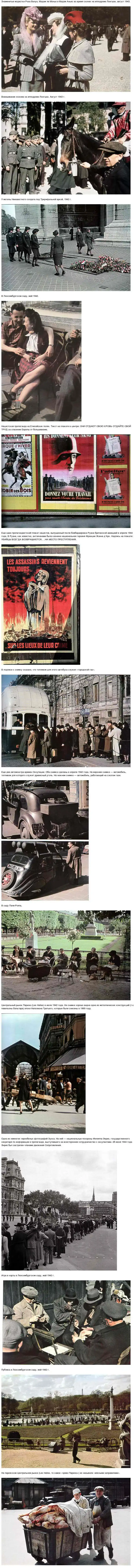 Период оккупации во Франции предпочитают вспоминать, как героическое время. Шарль де Голль, Сопротивление… Однако беспристрастные кадры фотохроники свидетельствуют, что все было не совсем так, как рассказывают ветераны и пишут в учебниках истории. Эти фотографии сделал корреспондент немецкого журнала «Сигнал» в Париже 1942-44 годов. Цветная пленка, солнечные дни, улыбки французов, приветствующих оккупантов. Спустя 63 года после войны подборка стала выставкой «Парижане во время Оккупации». Она вызвала грандиозный скандал. Мэрия французской столицы запрещала ее показ в Париже. В итоге, разрешения удалось добиться, но Франция увидела эти кадры лишь один раз. Второй — общественное мнение позволить себе уже не могло. Слишком разительным оказался контраст между героической легендой и правдой. (c)