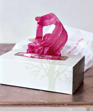 Из старой коробки из-под салфеток сделайте коробку для пакетов.
