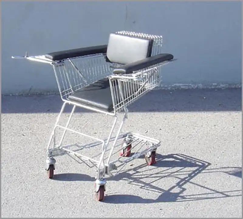 Необычная идея – превратить торговую корзинку в кресло-каталку.