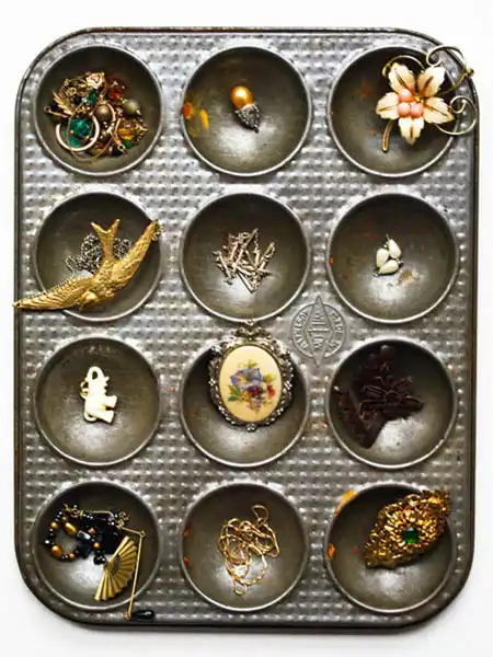 Украшения всегда разбросаны? Не беда, можно разложить их в старых формочках для запекания.