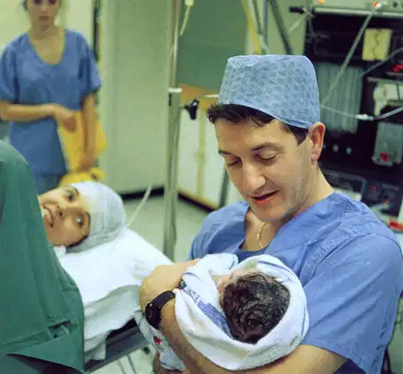 В процессе. В родзале и в операционной помощник держится мужественно, не засоряя эфир лишними текстами и хаотичными телодвижениями. Если и падает в обморок, то только от счастья, заслышав первый крик новорожденного. Впрочем, у него, как правило, слегка увлажняются глаза, и он с честью и достоинством, хотя и несколько неуверенно, перерезает пуповину.