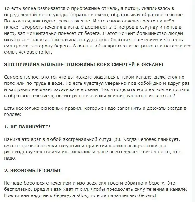 Смотрим далее подробную инструкцию о том, как не утонуть в море.