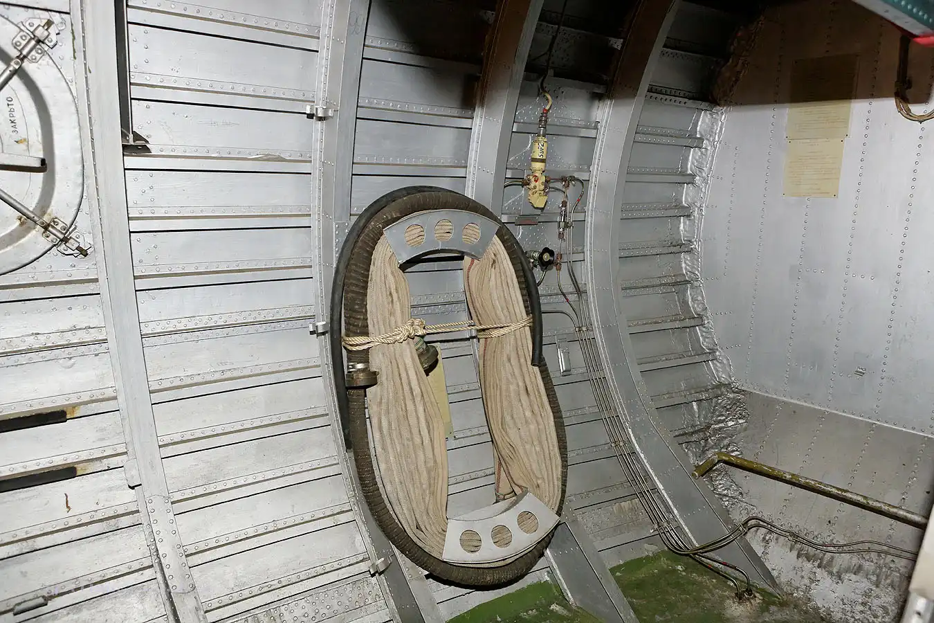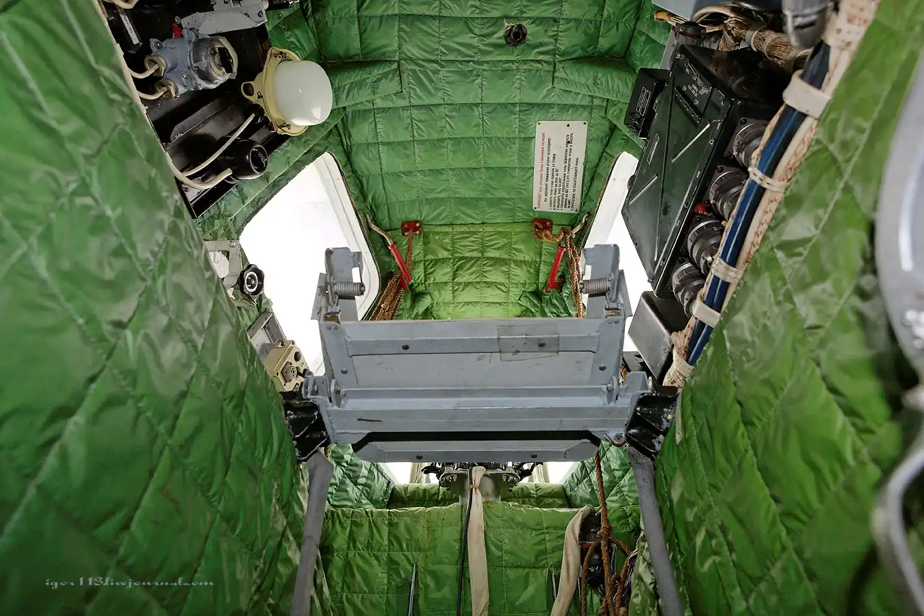 Вид снизу на шахту в хвостовом оперении,по нему можно попасть во вторую кабину стрелка и на самый верх экраноплана
