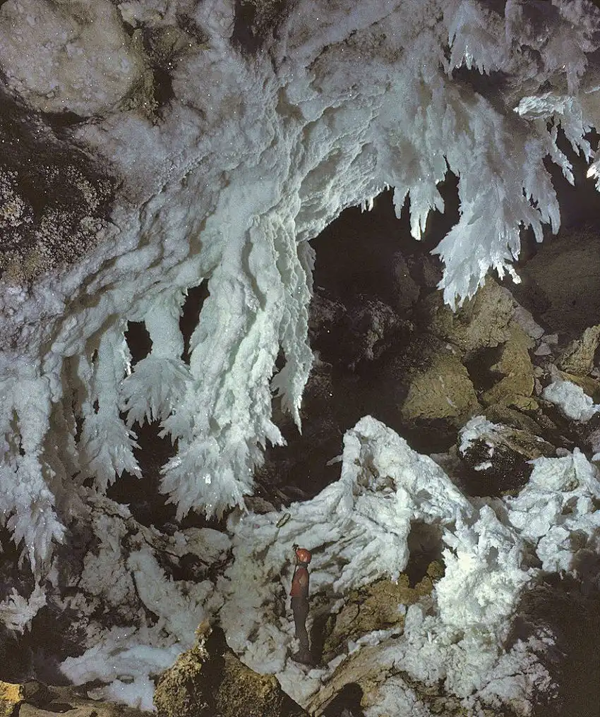 Пещера буквально переполнена всевозможными "украшениями": 6-метровые гипсовые люстры и натёки, по форме напоминающие волосы и бороды, 5-метровая солома из соды, гидромагнезитные шары, пещерный жемчуг, множество удивительных подводных образований и различных U- и J-образных проходов и петель