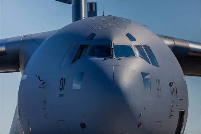 И современный Боинг C-17 «Глоубмастер» III. Могучий красавец – тяжеловоз. Представленный экземпляр прилетел на авиашоу с НАТОвской базы Папа в Венгрии. Это первый из самолетов построенный в 2009 году для использования участниками программы стратегических воздушных перевозок НАТО (NATO Strategic Airlift Capability, SAC)