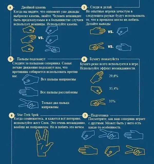 Отличная стратегия и описание того, как в большинстве случаев обыграть противника в "Камень, Ножницы, Бумага".